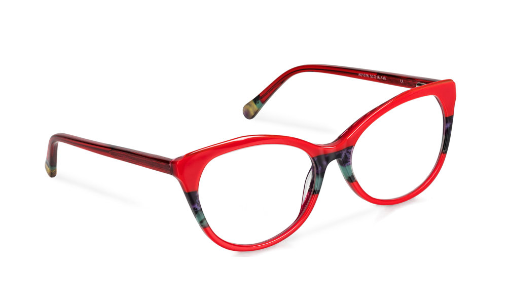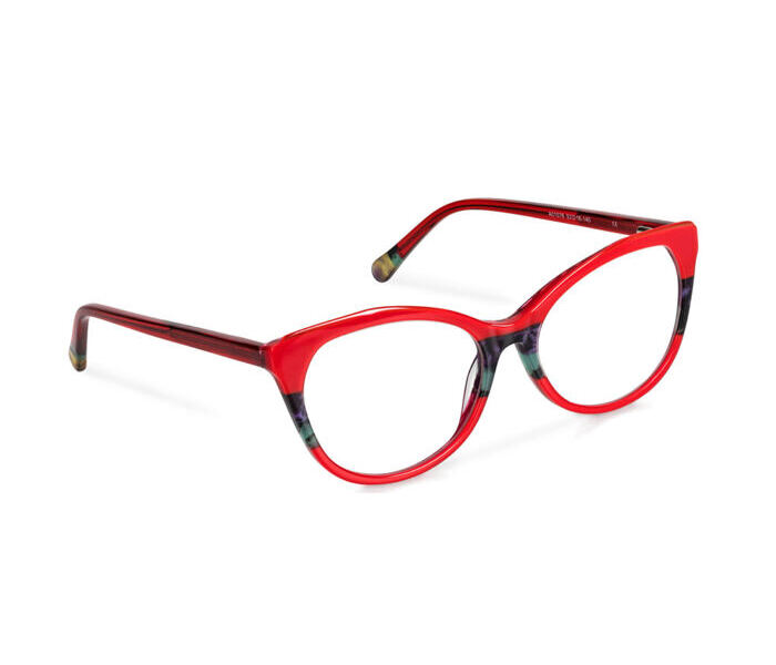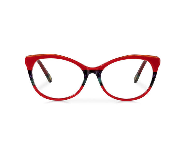 - Klassische Cateye-Lesebrille in wunderschönem Rot mit feinen zusätzlichen Farbakzenten.