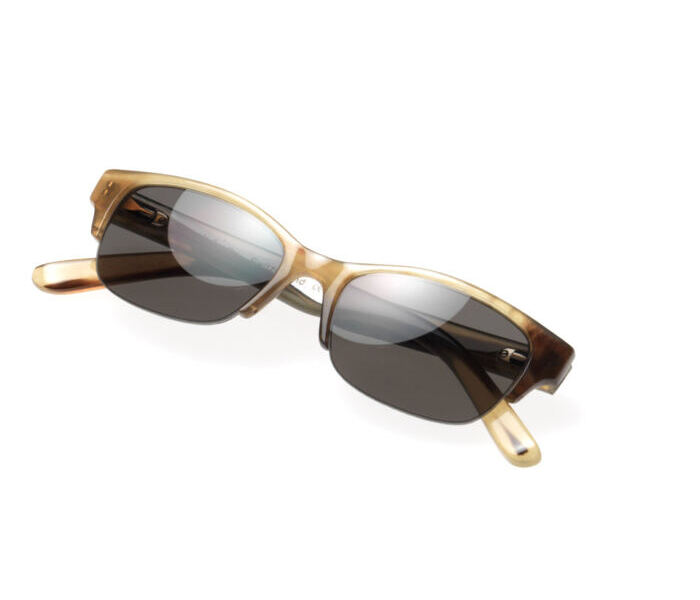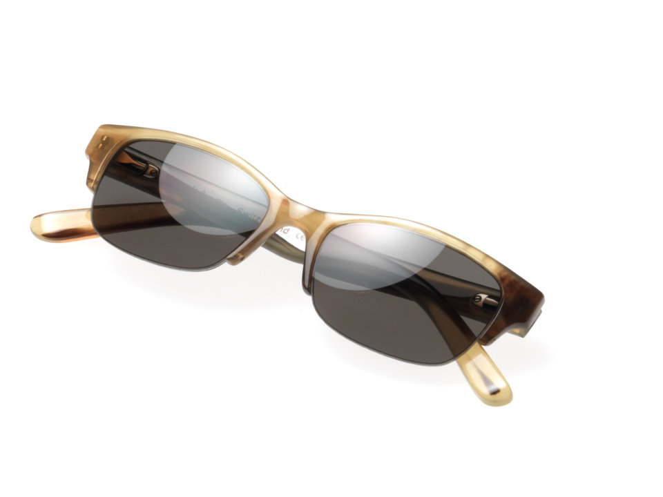 - Handpolierte Fassung aus Büffelhorn und Flexscharnieren